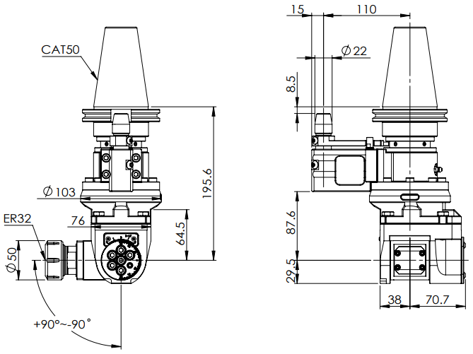 ◎ CAT50-ER32 Universal Angle Head (AHG Type)
